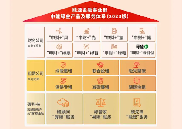 新体系上线后,将发挥平台优势,汇资源、聚能量,整合产品链条及财务资源,提供全应用场景下的综合金融服务及低成本资金支持。未来绿金产品及服务体系将以“绿色+”协同服务体系为标志性产品组合,以“申财+”“风光无限”“约惠碳金融”为三条主力产品线,为集团能源主业发展提供创新增值服务。